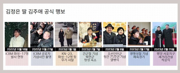 - 김주애, 2022년 11월 18일 ~ 2023년 2월 25일간 총 7차례 공식행사에 등장
