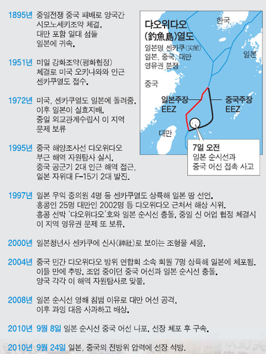 - ↑ https://news.joins.com/article/4473732센카쿠열도 영토분쟁 왜 … 풍부한 석유 매장 알려지며 대립 격화